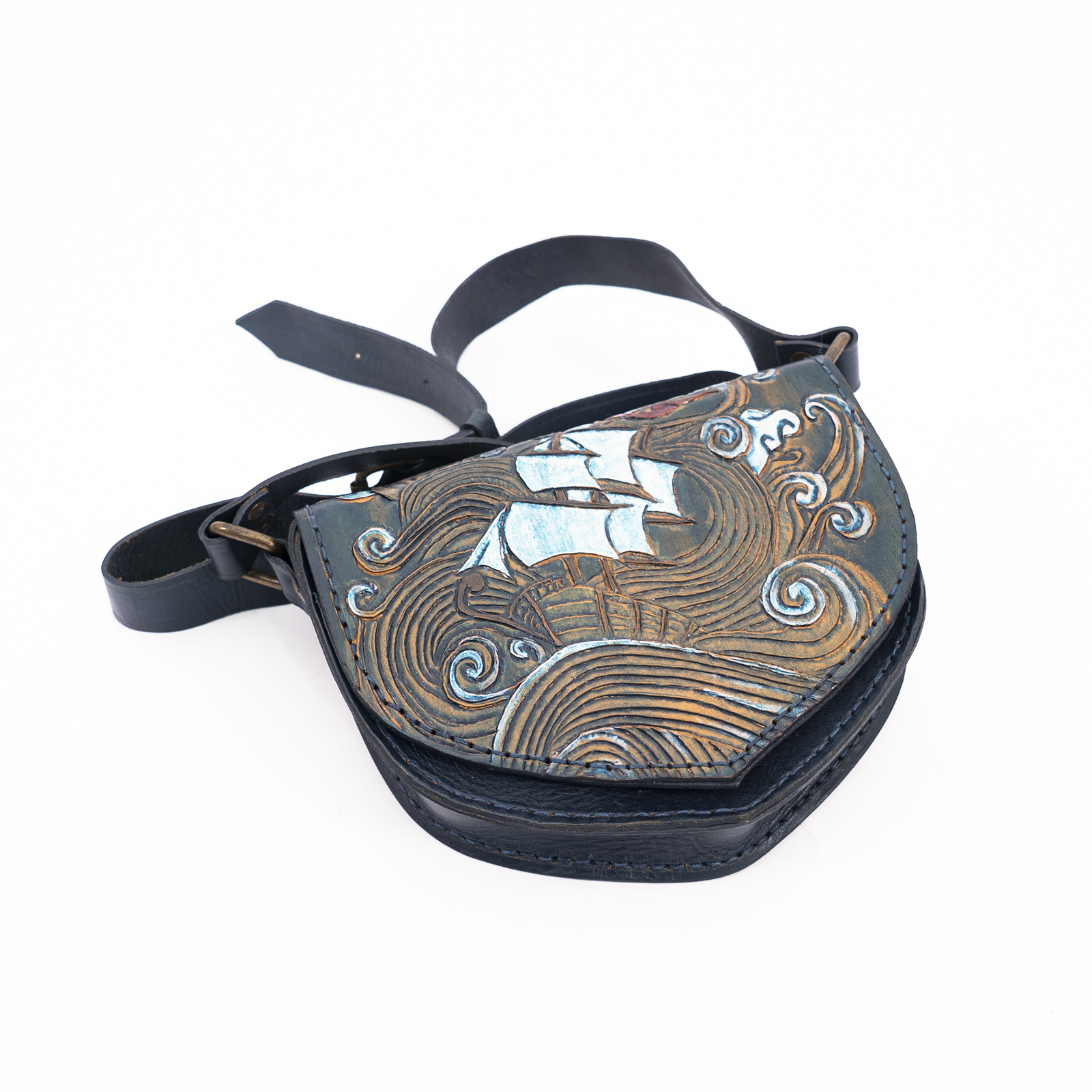 Derifix Axel El Yapımı Bayan Deri Çanta; sihirli ellerden çıkmış bir tablo adeta. Bir deri çantanın ön yüzünün kabartma renkli bir tabloya benzeyeceğini hayal etmiş miydiniz daha önce? Derifix Axel, dalgalı deniz yolculuğundaki muhteşem gemi motifi ve gemi güvertesini andıran şekli ile iç içe geçmiş detayları üzerinde barındıran muhteşem bir tasarım. İlk bakışta dikkat çeken bu tasarımı taşımak, özel olmayı gerektirecek kadar güzel.