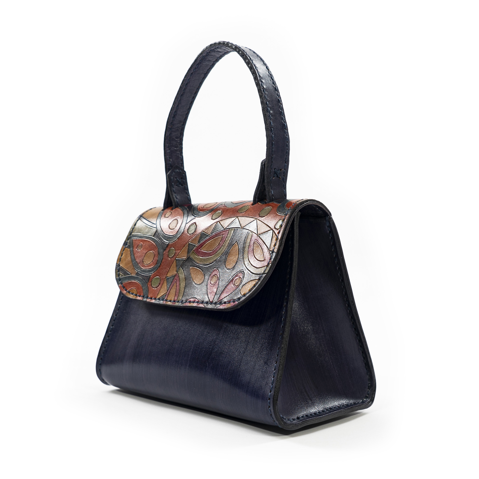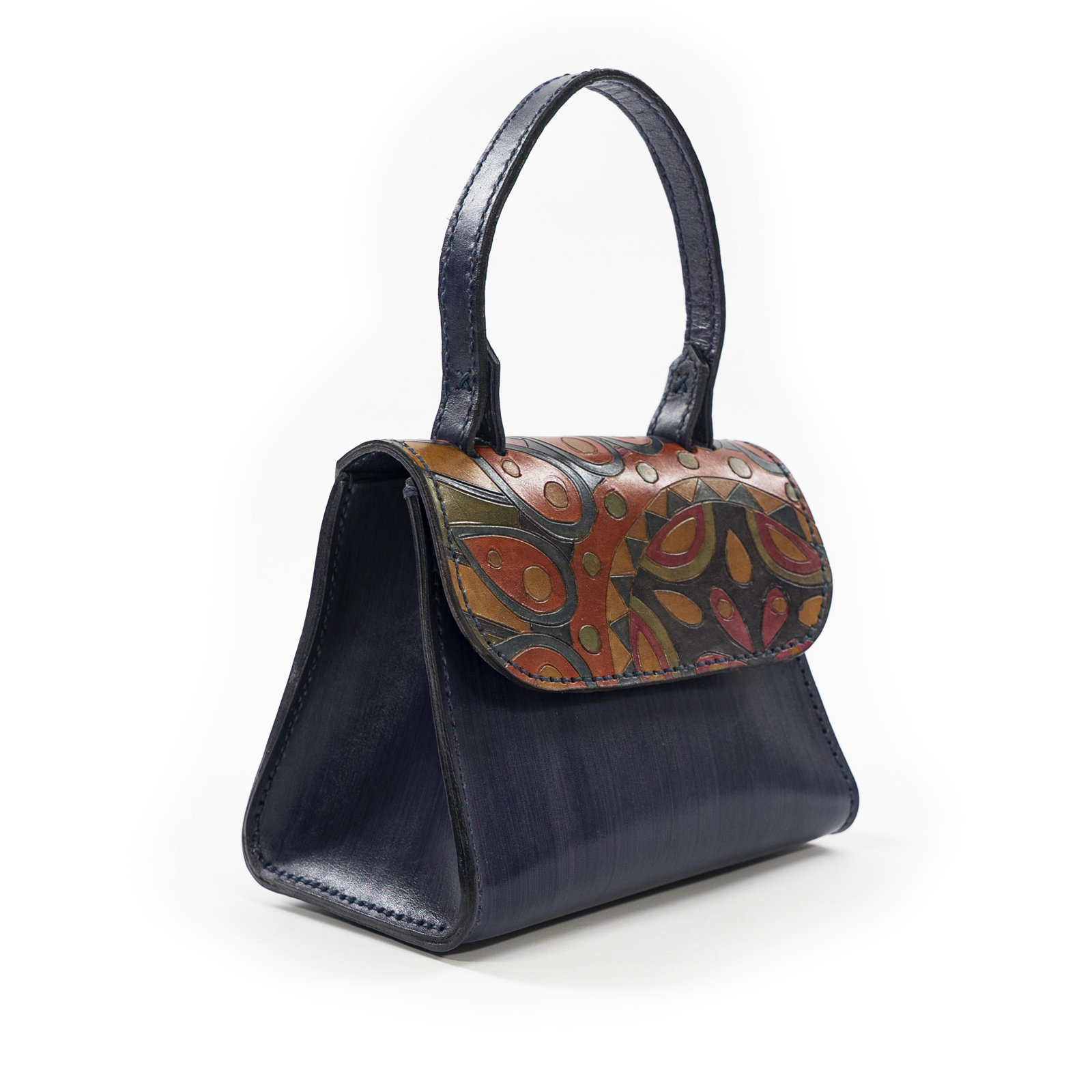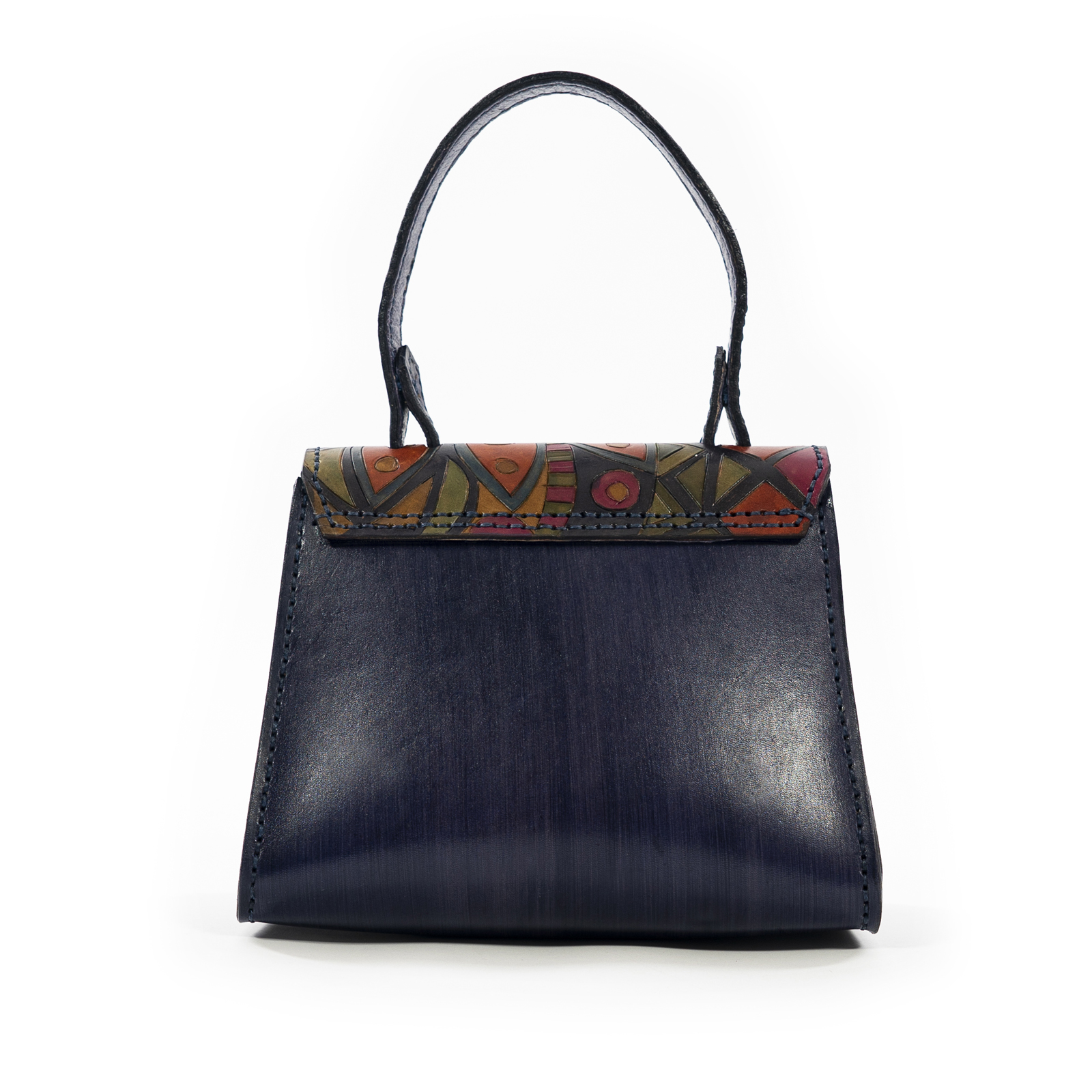 Özellikler: Bitkisel Tabaklanmış Dana Vaketa (2.2 mm) / Etnik Desen / İç ve Dış Anilin Boya / Eskitme Kremiyle Boyanmış / Antik Mıknatıslı Kilit