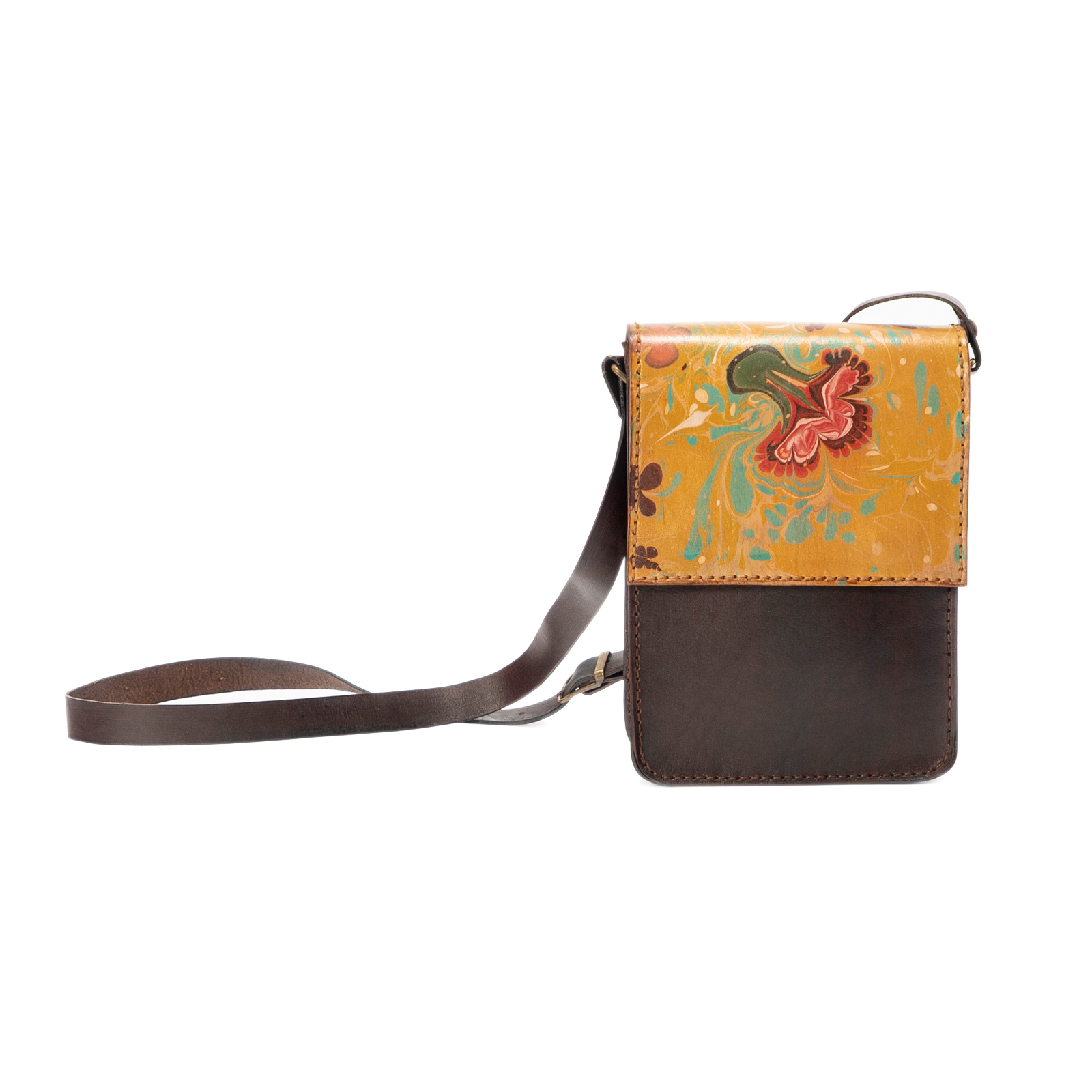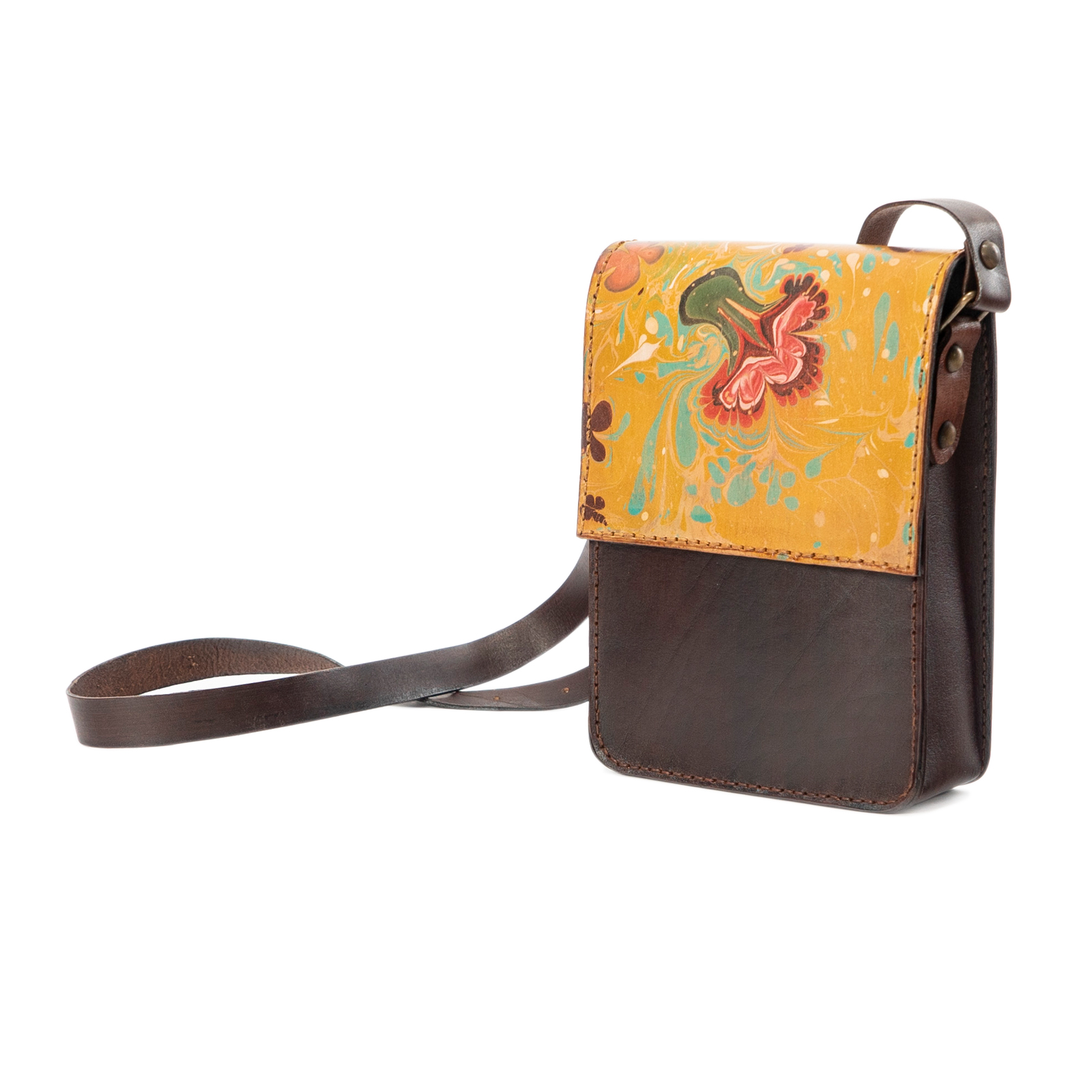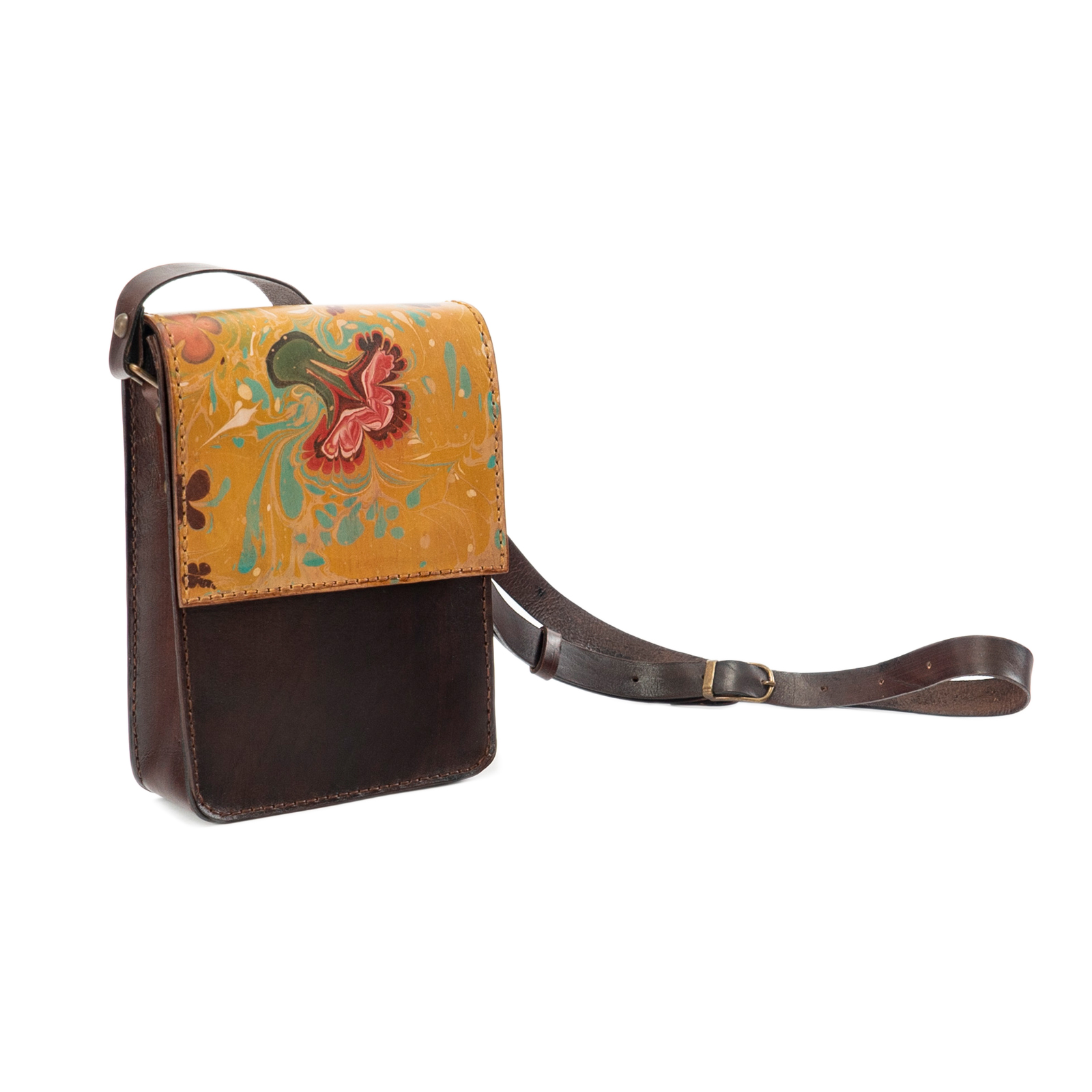 Derifix Diana El Yapımı Bayan Deri Çanta’da iki sanat bir arada. Deri sanatı ve ebru sanatı, iki marifet iki ustalık. Ebru işlemesini deri çantaya başarıyla uygulamak zor bir işlem. Bu da Derifix Diana’yı ayrıcalıklı ve değerli hale getiriyor. Artık dikkat çekici ve kimliğiniz gibi sadece size özel bir aksesuarınız var.