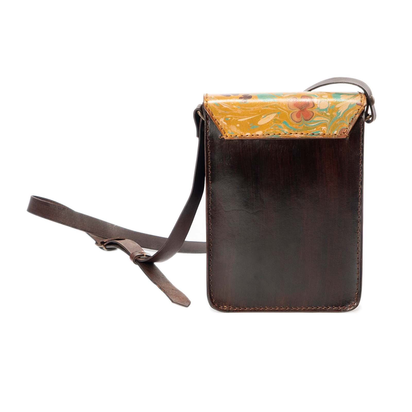 Özellikler: Ana Gövde Bitkisel Tabaklanmış Dana Vaketa (2.2 mm) / Kapak Dana Vaketa (1.8 mm) / Kapak İç Astarı Koyun Vaketa (1.6 mm) / Anilin Boya / Kapakta Ebru Çalışıldı / Antik Mıknatıslı Kilit