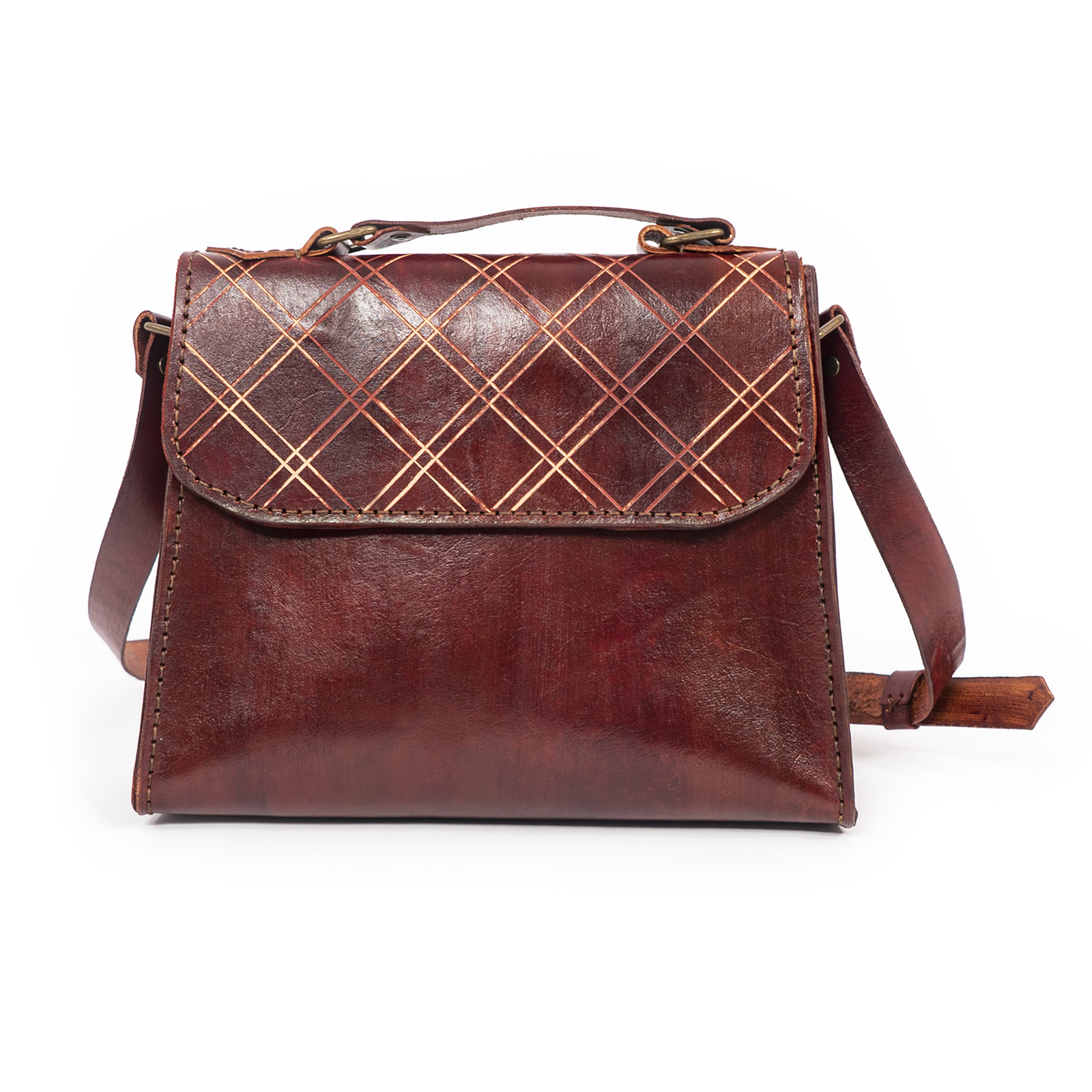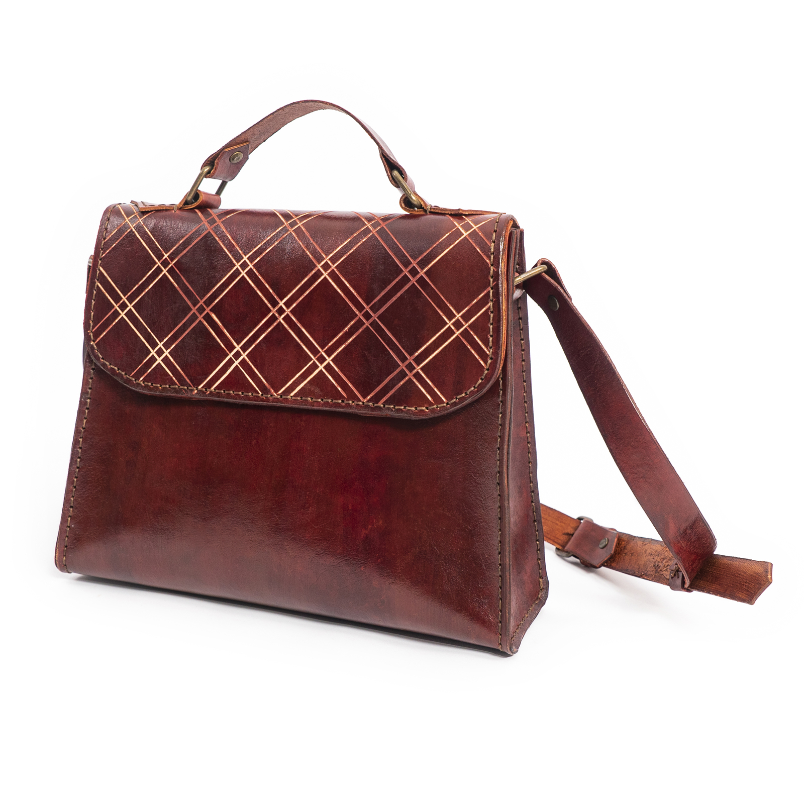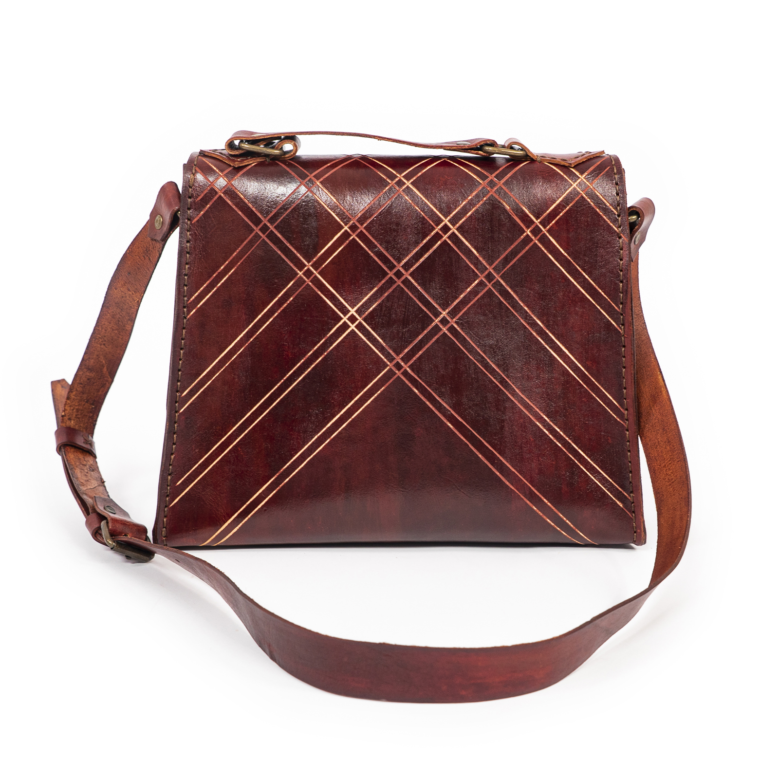 Özellikler : Ekose Kazıma Desenli Natural Deri (1.8 mm) / Anilin Boya ve Eskitme Kremi / Gizli Antik Mıknatıs Kilit / Üstten Tutamaklı