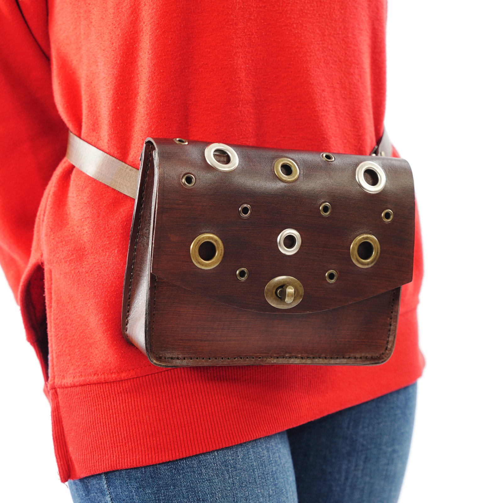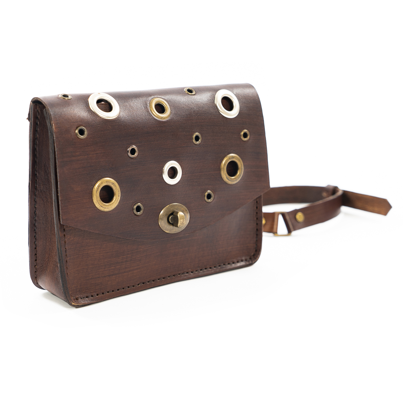 Derifix Moza El Yapımı Bayan Deri Çanta, yapımı cesaret ve ustalık isteyen çizgi dışı bir çalışma. Hem bel çantası hem de çapraz kullanım imkanı sunan Derifix Moza, ilk bakışta dikkat çeken özgün bir tasarıma sahip. Kapaktaki altın ve gümüş renkli antik kuş gözleri benzersiz bir şıklığın ritmini yakalamanıza fırsat tanıyor.