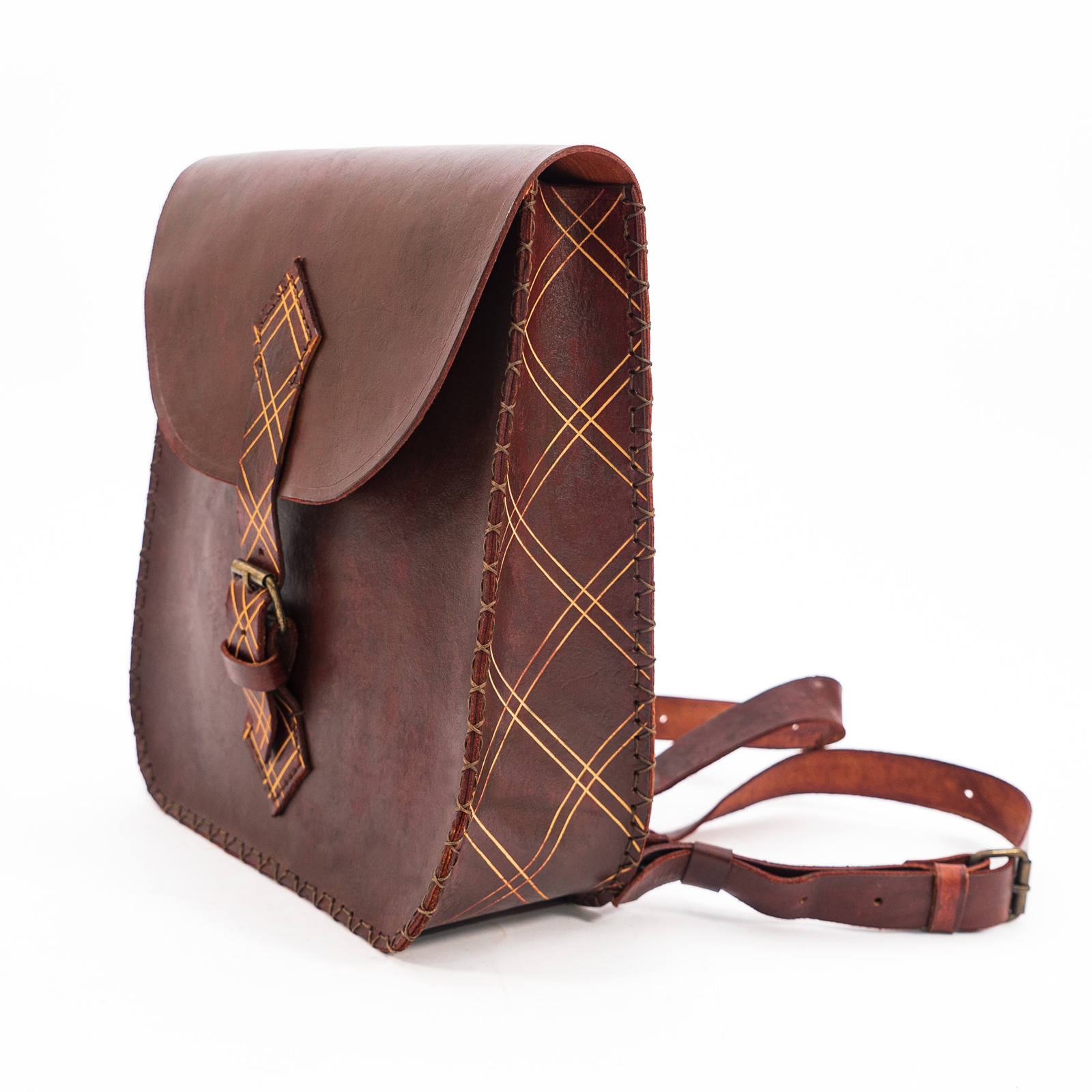 Özellikler : Ekose Kazıma Desenli Natural Dana Derisi (1.8 mm) / Dekoratif Dikişli / Anilin Boya ve Eskitme Kremi / Antik Apartlı / Antik Tokalı Kilit